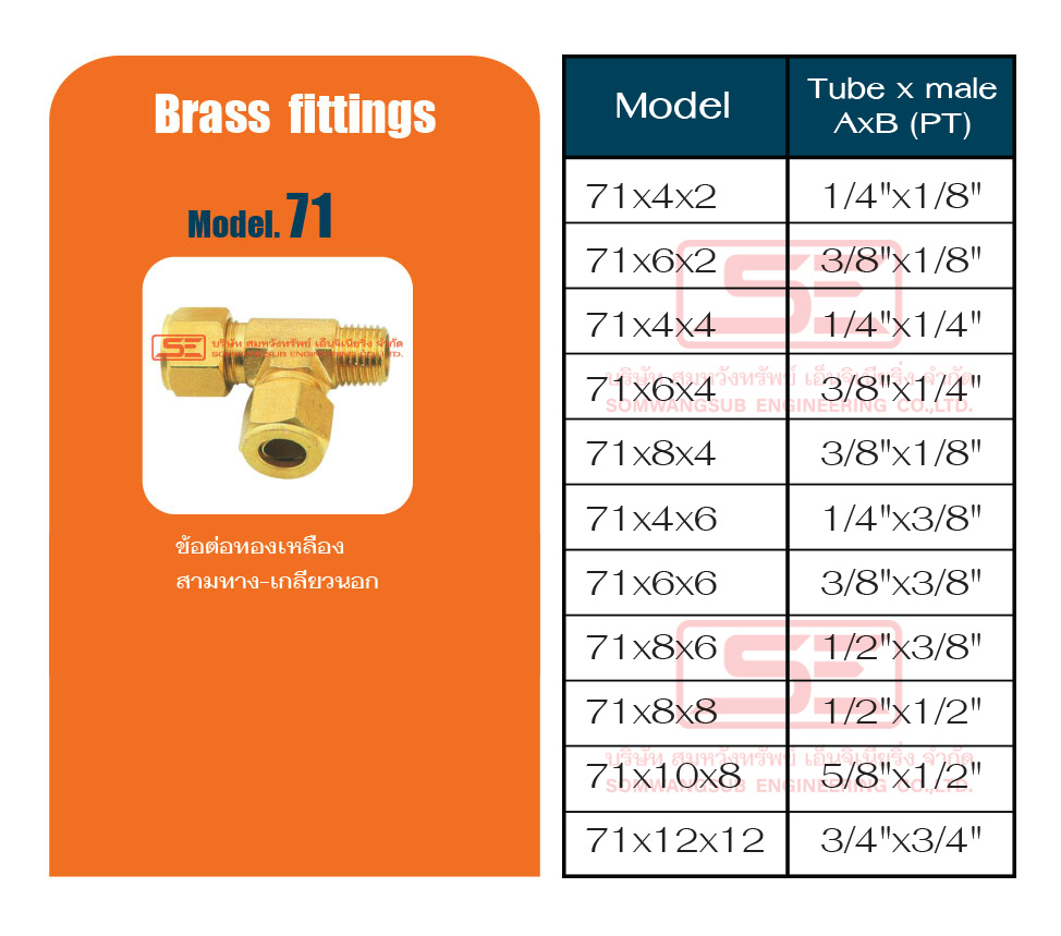 model 71 : ข้อต่อทองเหลือง-สามทาง-เกลียวนอก